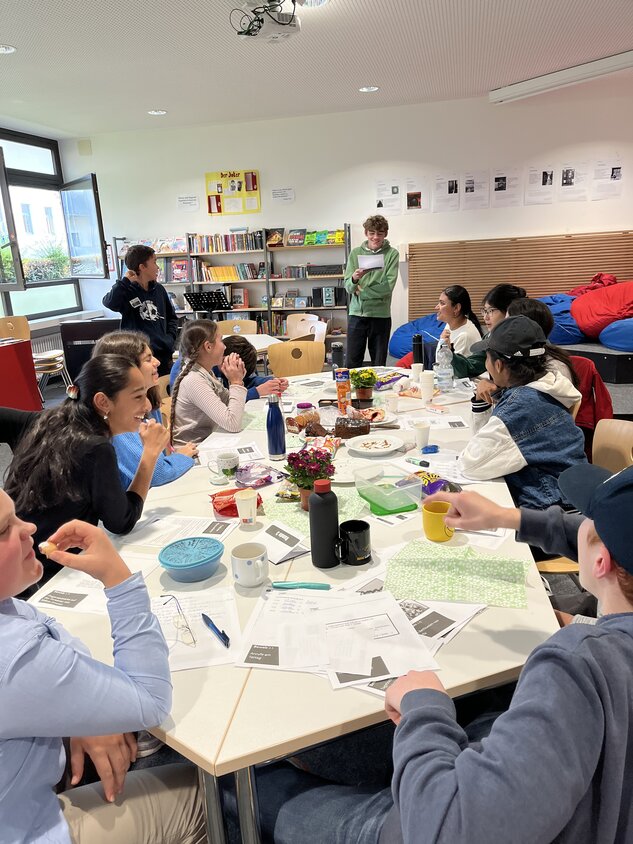 Der Buchclub des Lessing-Gymnasiums traf sich an einem Donnerstagnachmittag im Oktober bei Keksen, Kakao und Kuchen in der Bücherei. Bei diesem zweistündigen Krimi-Tea versuchten sie den Fall zu lösen und den Mörder zu finden. Es wurde geschauspielert, lauthals geschimpft, beschuldigt, gelacht und am Ende ungläubig aufgeschrien.