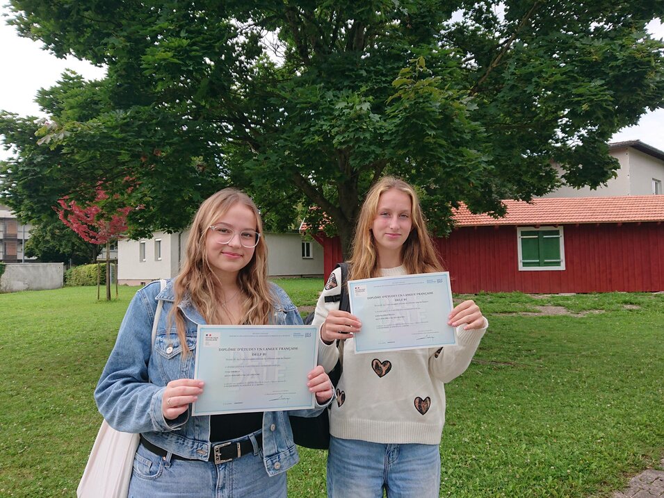 Wir freuen uns, in diesem Jahr fünf Schülerinnen und Schülern zum Bestehen der DELF-Prüfung gratulieren zu dürfen! Herzlichen Glückwunsch an Vivien Eberenz und Katharina Zimmermann zum Erreichen des Sprachniveaus B1 und an Kira Neumann, Alexander Pfnür und einer weiteren Schülerin der 12. Klasse zum Erreichen des Sprachniveaus B2!