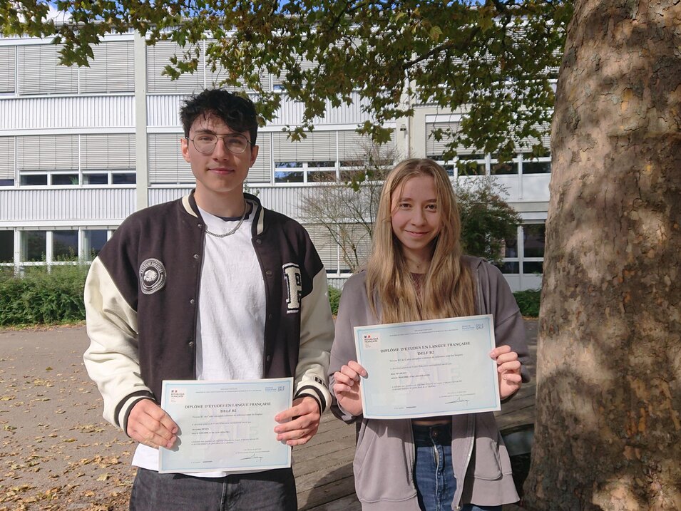 Wir bieten unseren Schülern und Schülerinnen die Möglichkeit, direkt an unserer Schule die Zertifikate auf den Niveaus B1 (10. Klasse) und B2 (11. Klasse) zu erwerben. Zur Prüfungsvorbereitung findet eine AG am Nachmittag statt, sodass die Teilnehmer und Teilnehmerinnen die Prüfungsformate kennenlernen, an Sicherheit gewinnen und schlussendlich die Prüfung erfolgreich ablegen können. Die Schüler und Schülerinnen werden von der Anmeldung über die Vorbereitung und die Prüfung bis hin zur Überreichung der Zertifikate des französischen Bildungsministeriums begleitet und unterstützt.