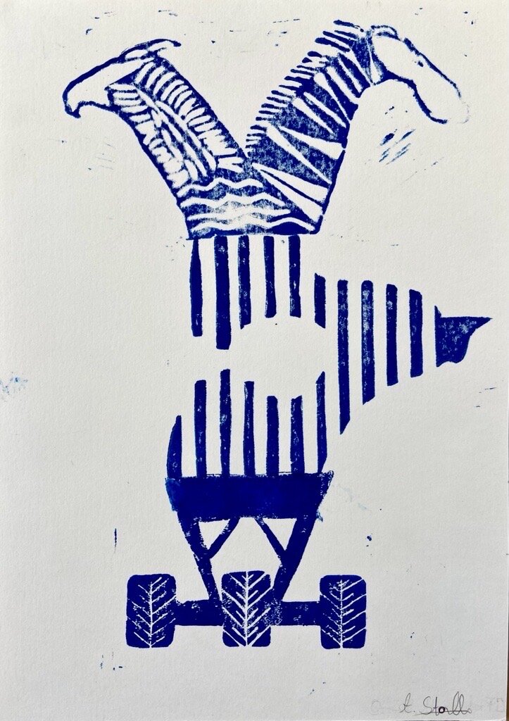 Piktogramm meiner Lieblingstätigkeit (Linolschnitt) von Diana Nazarenko aus 7a bzw. Willkommensgruppe