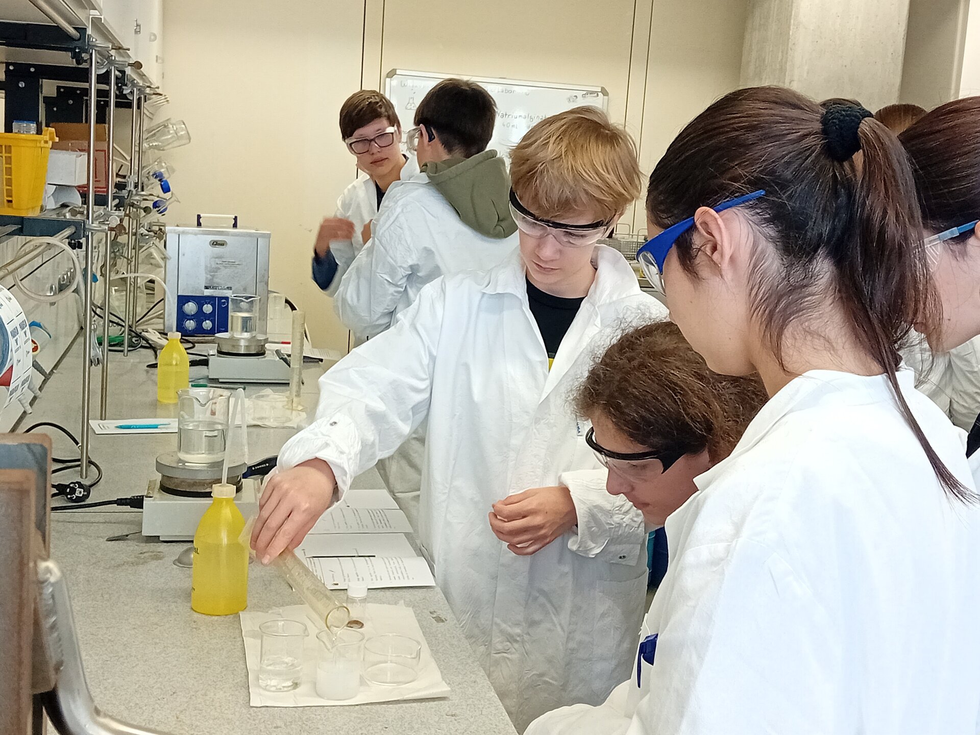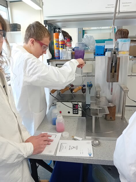 Beim Besuch des schulinternen Begabungskurses L+ im EMU-Labor der Universität Ulm erwartete die Schülerinnen und Schüler ein spannender und praxisnaher Einblick in die Welt der Kunststoffe. Unter fachkundiger Anleitung durften sie selbst experimentieren und verschiedene Herstellungsprozesse hautnah erleben.