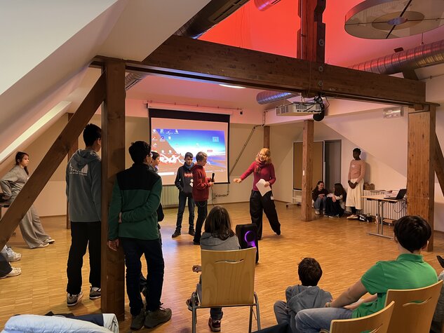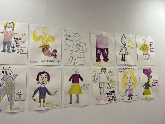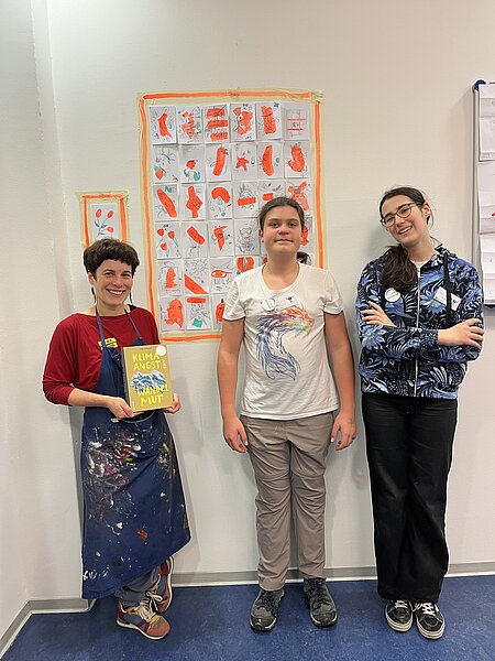 Das Angebot an Workshops war breit gefächert: Die Jugendbuchautorin Dorit Linke („Jenseits der blauen Grenze“ = ein Jugendbuch über die Flucht zweier Jugendlicher aus der DDR schwimmend über die Ostsee) ließ Texte „wider der Tyrannei“ schreiben. Die Synchronsprecherin und Sprecherzieherin Constanze Alvarez erhob mit ihren Teilnehmerinnen die Stimme für mutige Botschaften. Die Illustratorin Lena Hällmeyer („Klimaangst und Wandelmut“ = ein Bild-Text-Buch zum Umgang mit Zukunftsangst und Aktivismus) zeichnete und malte mit ihrer Gruppe Texte und Bilder mit Empörung, Wandelmut und Bääm-Effekt. Die Medienpädagogin Yvonne Spyt animierte mit ihren Workshopteilnehmenden Trickfilme zu Büchern mit Themen wie Anderssein und Vielfalt. Und der Theaterpädagoge Benjamin Ports spielte mit den Schülerinnen und Schülern das Kinderbuch „Die Gurkentruppe“ in verschiedenster Form.