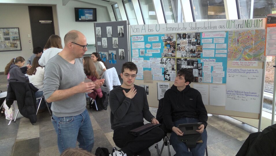 Am 12. März war der Journalist Nico Dirner von der Südwest Presse am Lessing-Gymnasium, um die Schülerinnen und Schüler an das journalistische Schreiben heranzuführen. Diese sollen nämlich für das laufende Zeitungsprojekt einen eigenen Artikel verfassen, in dem sie ihr Thema der Wissenschaftswoche anschaulich präsentieren. Auch in diesem Jahr gibt es ein breites Spektrum an verschiedensten Inhalten, wie etwa Gestaltungsideen zur Landesgartenschau 2030, Frauen der Ulmer Stadtgeschichte und viele mehr. Aus diesen Themen aber einen gelungenen Zeitungstext zu machen, ist nicht einfach und so war es ungemein hilfreich, einen Profi an der Seite zu haben: Wie bereits in den vergangenen Jahren nahm sich Herr Dirner wieder viel Zeit für jede Gruppe, diskutierte Ideen, gab Feedback und wertvolle Tipps. Die Schülerinnen und Schüler dankten es mit einem langen Schlussapplaus. Die besten Texte sollen dann in der Südwest Presse veröffentlicht werden.