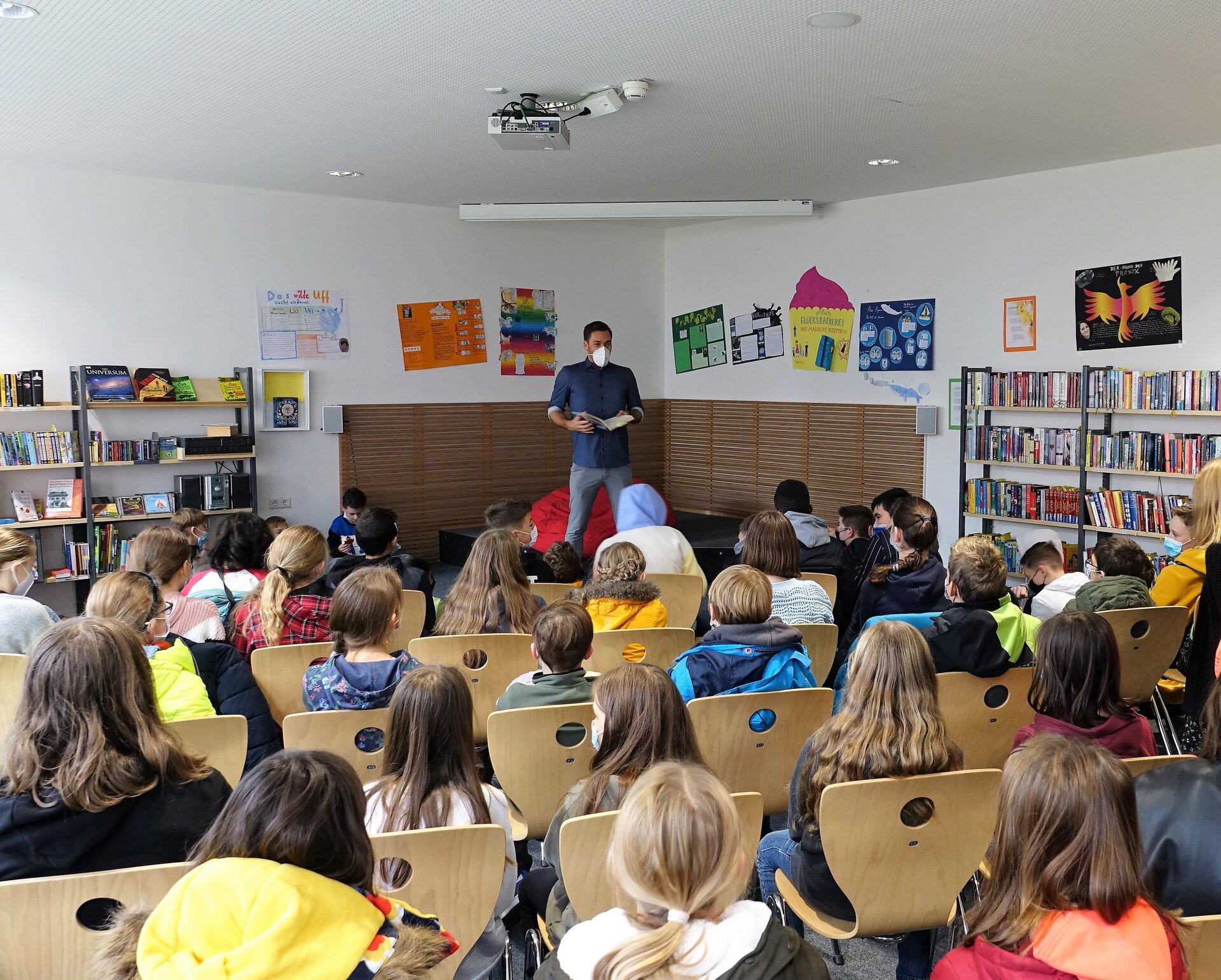„Kommt in der zweiten Pause in die Unterstufenbibliothek, lasst euch berieseln und genießt die Atmosphäre“, schallte es durch die Sprechanlage und erinnerte die Schülerinnen und Schüler daran, dass im Rahmen des Vorlesetages am 19. November 2021 wieder eine spannende Geschichte aus dem schier unendlichen Fundus unserer Schulbibliothek vorgelesen werden würde. Jugendliche aller Jahrgangsstufen folgten dem Aufruf, versammelten sich in der Bibliothek und lauschten gebannt. Herr Janczik las eine Sage namens „Der Wassermann“ vor, entführte die Jugendlichen damit in eine völlig andere Welt und ließ sie für einen kurzen Moment den stressigen Schulalltag vergessen.